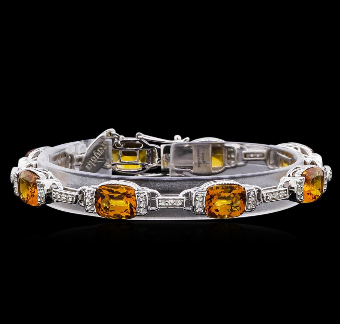 From the brand whose products have inspired creative expression for more than 110 years comes this beautiful bracelet by Crayola. This stunning piece of jewelry reflects the image and colorful personality of the Crayola brand. The Bracelet features .925 Silver With Rhodium weighing 17.73oz containing Neon Carrot Citrine (AAA) Cushion 10x8mm - 8Pcs + Natural White Sapphire Round 1.50mm - 69Pcs (With J BACK). Total Citrine weight is 20ct. Total White Sapphire weight is 1.17ct. Measures: 7.50".