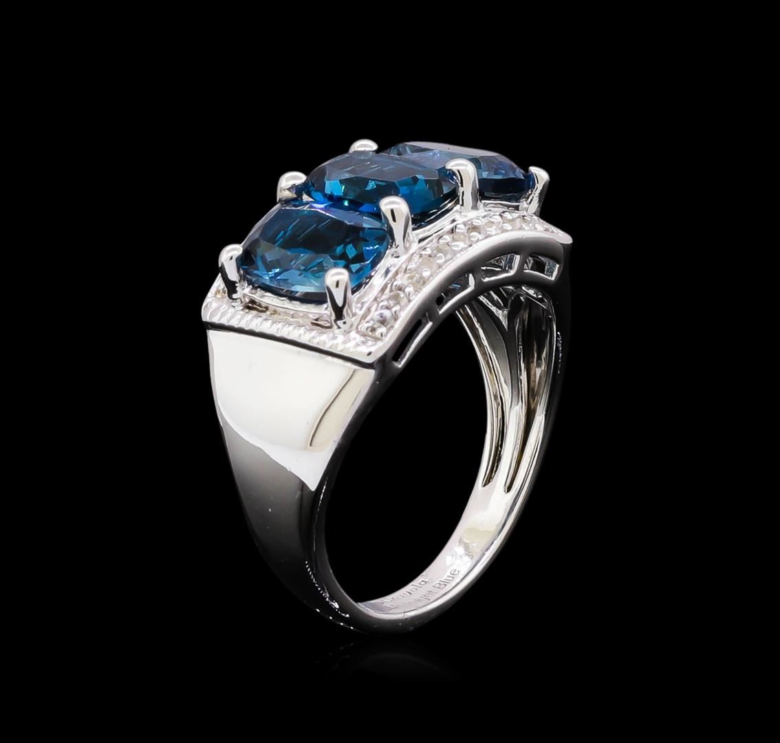 From the brand whose products have inspired creative expression for more than 110 years comes this beautiful ring by Crayola. This stunning piece of jewelry reflects the image and colorful personality of the Crayola brand. The Ring features .925 Silver With Rhodium weighing 4.77oz containing Midnight Blue London Blue Topaz (AAA) Cushion 7x5mm - 3Pcs + White Sapphire Dia Cut Round 1.00mm - 22Pcs (With J BACK). Total Blue Topaz weight is 3ct. Total White Sapphire weight is 0.11ct.