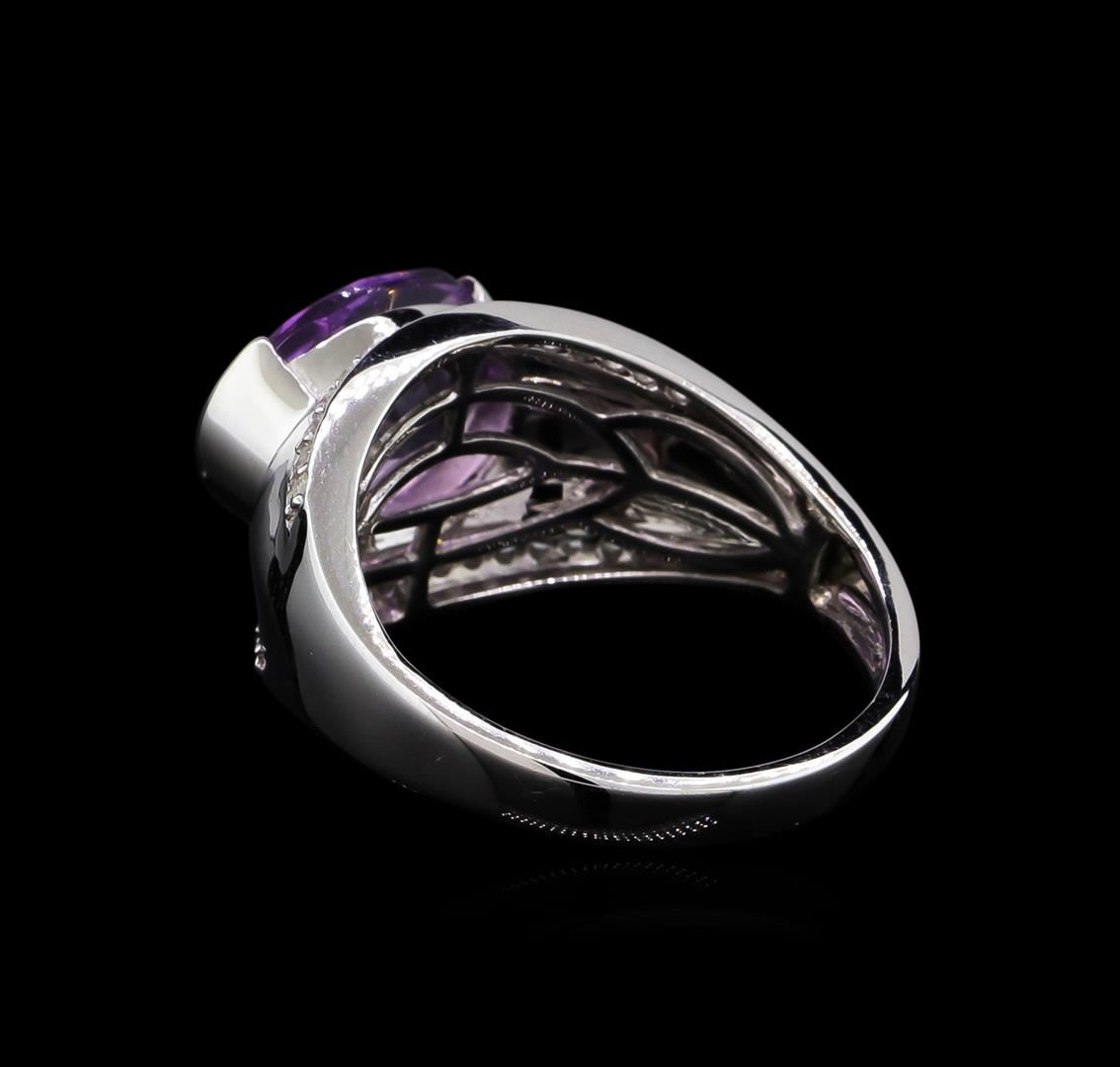 From the brand whose products have inspired creative expression for more than 110 years comes this beautiful ring by Crayola. This stunning piece of jewelry reflects the image and colorful personality of the Crayola brand. The Ring features .925 Silver With Rhodium weighing 5.58oz containing Blush Dark Pink Amethyst (AAA) CB Oval 12x10mm - 1Pc + Natural White Sapphire Round 1.20mm - 32Pcs (With J BACK). Total Pink Amethyst weight is 3.95ct. Total White Sapphire weight is 0.38ct.