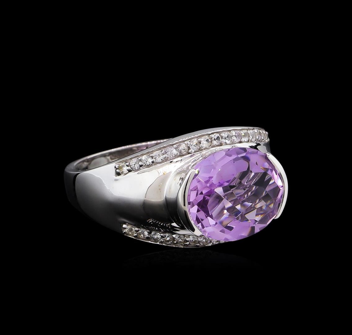 From the brand whose products have inspired creative expression for more than 110 years comes this beautiful ring by Crayola. This stunning piece of jewelry reflects the image and colorful personality of the Crayola brand. The Ring features .925 Silver With Rhodium weighing 5.58oz containing Blush Dark Pink Amethyst (AAA) CB Oval 12x10mm - 1Pc + Natural White Sapphire Round 1.20mm - 32Pcs (With J BACK). Total Pink Amethyst weight is 3.95ct. Total White Sapphire weight is 0.38ct.