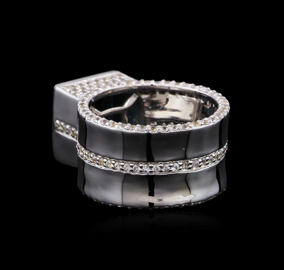 From the brand whose products have inspired creative expression for more than 110 years comes this beautiful ring by Crayola. This stunning piece of jewelry reflects the image and colorful personality of the Crayola brand. The Ring features .925 Silver With Rhodium weighing 8.2oz containing Midnight Blue London Blue Topaz (AAA) Square 9.00mm - 1Pc + Natural White Sapphire Round 1.10mm - 195Pcs (With J BACK). Total Blue Topaz weight is 4.2ct. Total White Sapphire weight is 1.76ct.