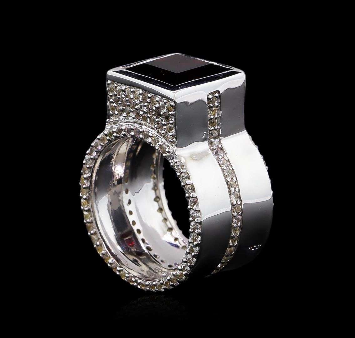 From the brand whose products have inspired creative expression for more than 110 years comes this beautiful ring by Crayola. This stunning piece of jewelry reflects the image and colorful personality of the Crayola brand. The Ring features .925 Silver With Rhodium weighing 8.2oz containing Maroon Garnet (AAA) Square 9.00mm - 1Pc + Natural White Sapphire Round 1.10mm - 195Pcs (With J BACK). Total Garnet weight is 4.2ct. Total White Sapphire weight is 1.76ct.