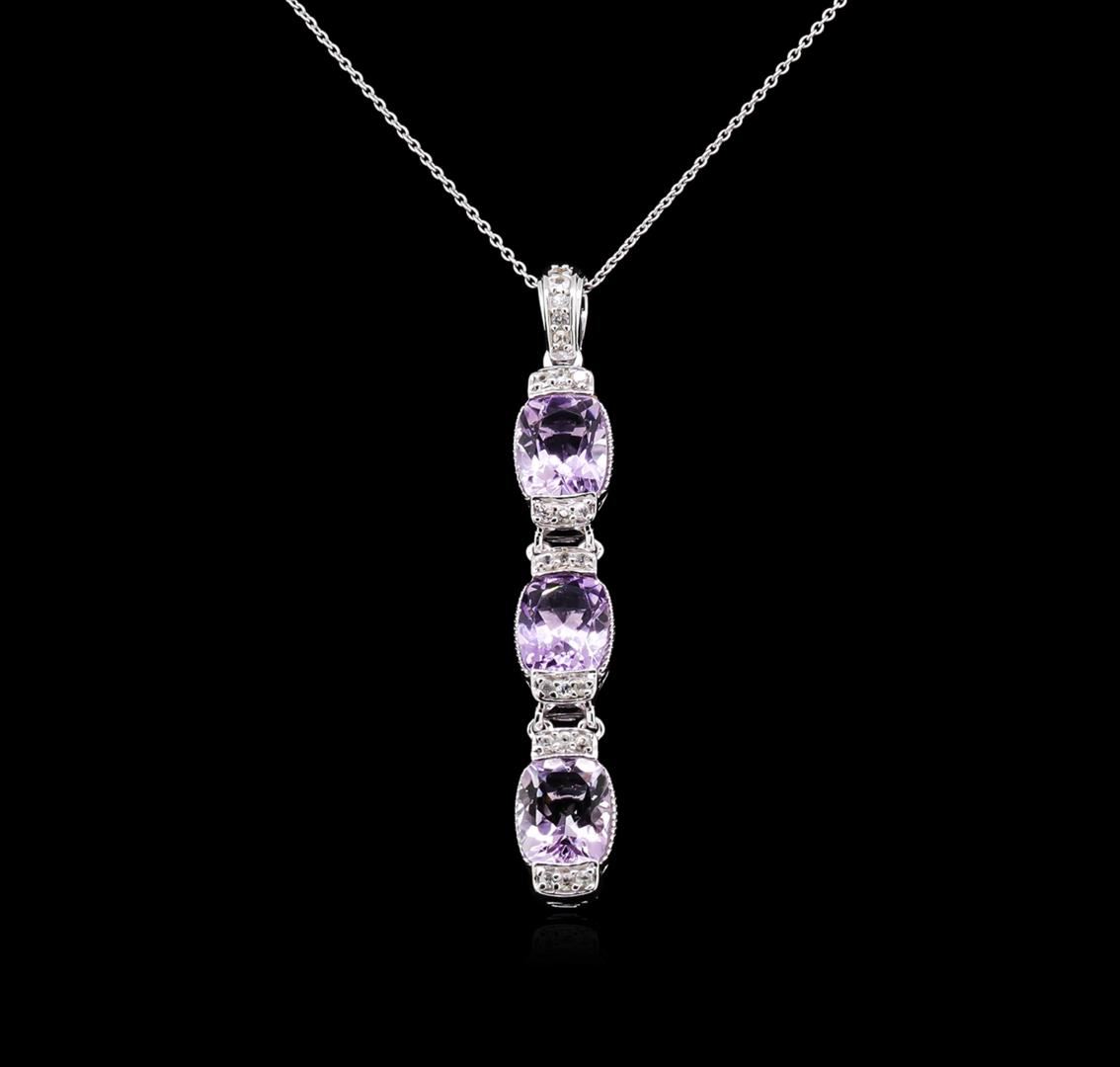 From the brand whose products have inspired creative expression for more than 110 years comes this beautiful pendant with chain by Crayola. This stunning piece of jewelry reflects the image and colorful personality of the Crayola brand. The Pendant With Chain features .925 Silver With Rhodium weighing 6.28oz containing Blush Dark Pink Amethyst (AAA) Cushion 10x8mm - 3Pcs + Natural White Sapphire Round 1.50mm - 23Pcs (With J BACK). Total Pink Amethyst weight is 6.6ct. Total White Sapphire weight is 0.39ct. Measures: 18".