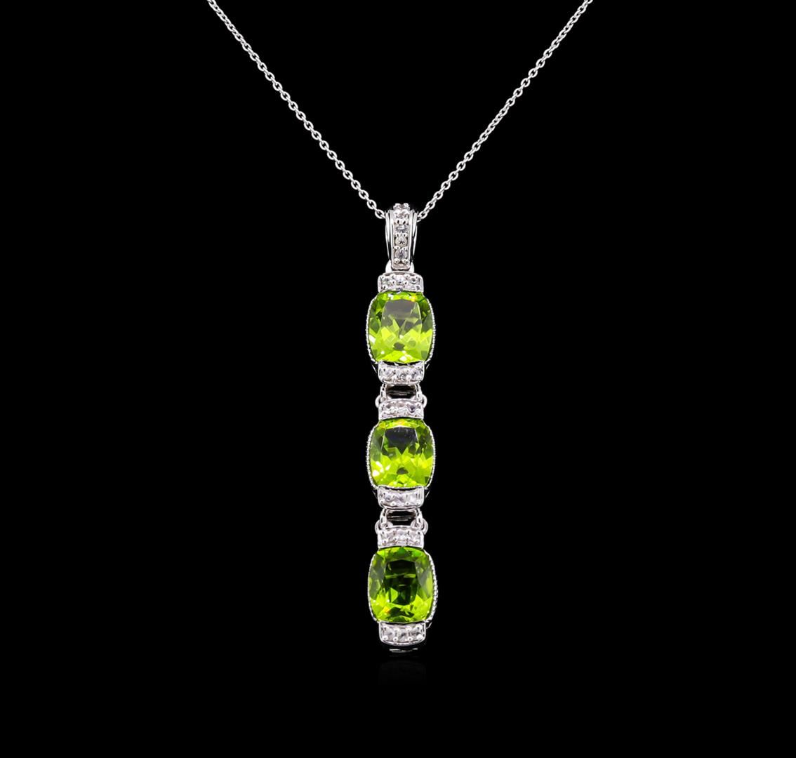 From the brand whose products have inspired creative expression for more than 110 years comes this beautiful pendant with chain by Crayola. This stunning piece of jewelry reflects the image and colorful personality of the Crayola brand. The Pendant With Chain features .925 Silver With Rhodium weighing 6.28oz containing Granny Smith Apple Peridot (AAA) Cushion 10x8mm - 3Pcs + Natural White Sapphire Round 1.50mm - 23Pcs (With J BACK). Total Peridot weight is 7.8ct. Total White Sapphire weight is 0.39ct. Measures: 18".