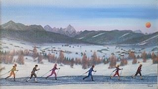 A vintage original from Fanch's Winter Sports period, this 14x24" original is stretched acrylic on canvas ; with COA