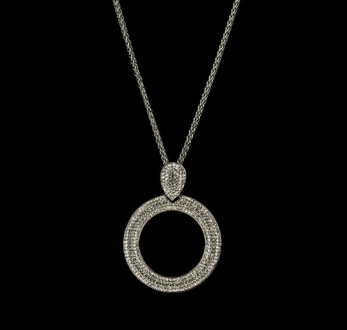 High end designer jewelry. Crystal Pave Circle Pendant Necklace - Rhodium Plated. Rhodium Plated Chain L. Necklace. Silver/ Clear. 32/2.5inches. Total Weight: 58.6 grams.