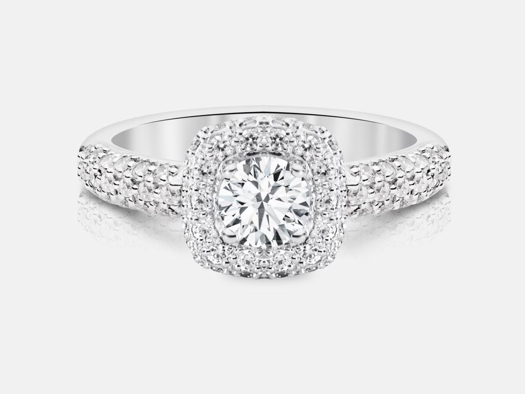 14K WG Halo style engagement setting set w/ 68-0.34 Cts G-H SI2 side stones w/ a 4.8 mm CZ Center.