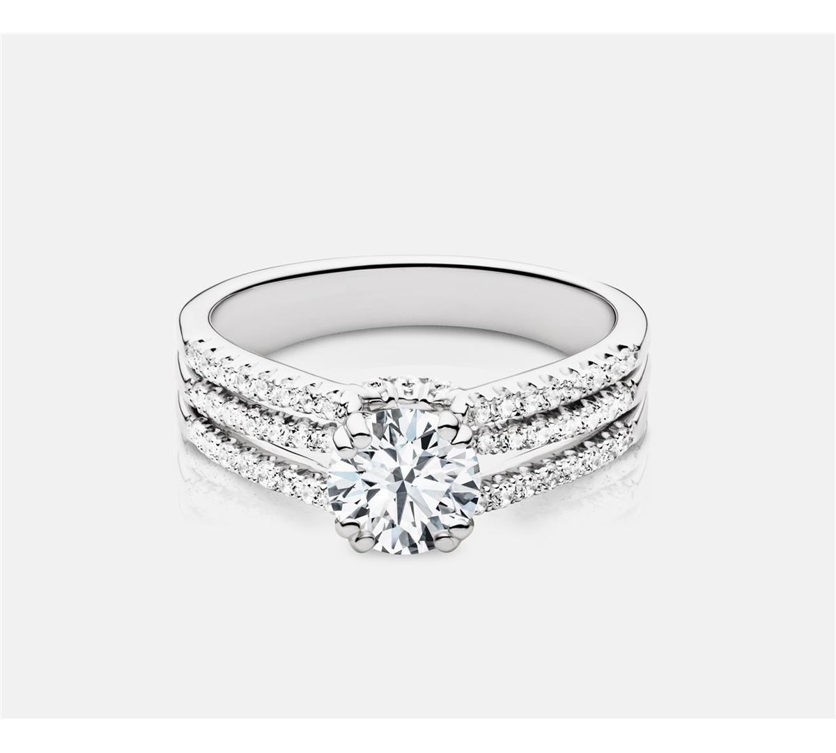 14K WG diamond in the shank Engagement setting set w/ 54-0.38 Cts G-H SI2 side stones w/ a 6.5 mm CZ Center.