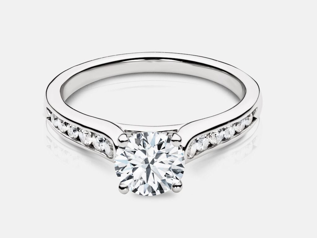 14K WG diamond in shank Style Engagement ring Set w/ 12- 0.23 Cts G-H SI2 side stones w/ a 5 mm CZ Center.