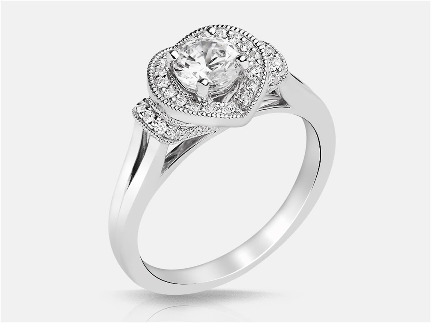 14K TT RG halo style engagement setting set w/ 44-0.18 Cts G-H SI2 side stones w/ a 5.2 mm CZ Center.