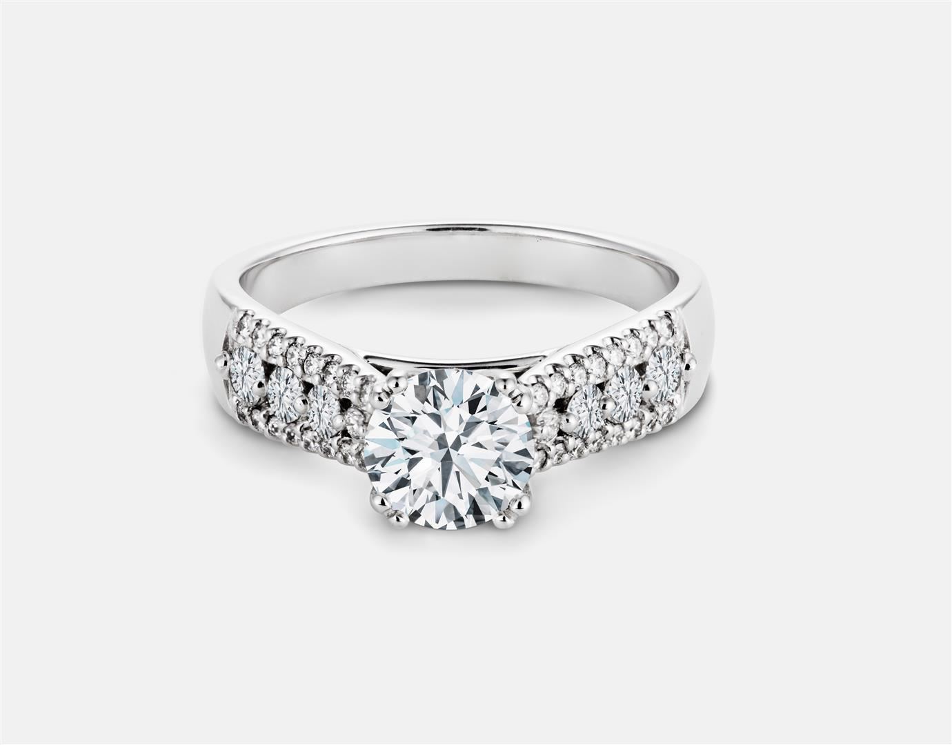 14K WG diamond in the shank Engagement setting set w/ 40-0.39 Cts G-H SI2 side stones w/ a 5.8 mm CZ Center.