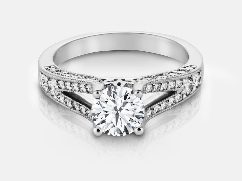 14K WG split shank style engagement setting set w/ 52-0.67 Cts G-H SI2 side stones w/ a 5.2 mm CZ Center.