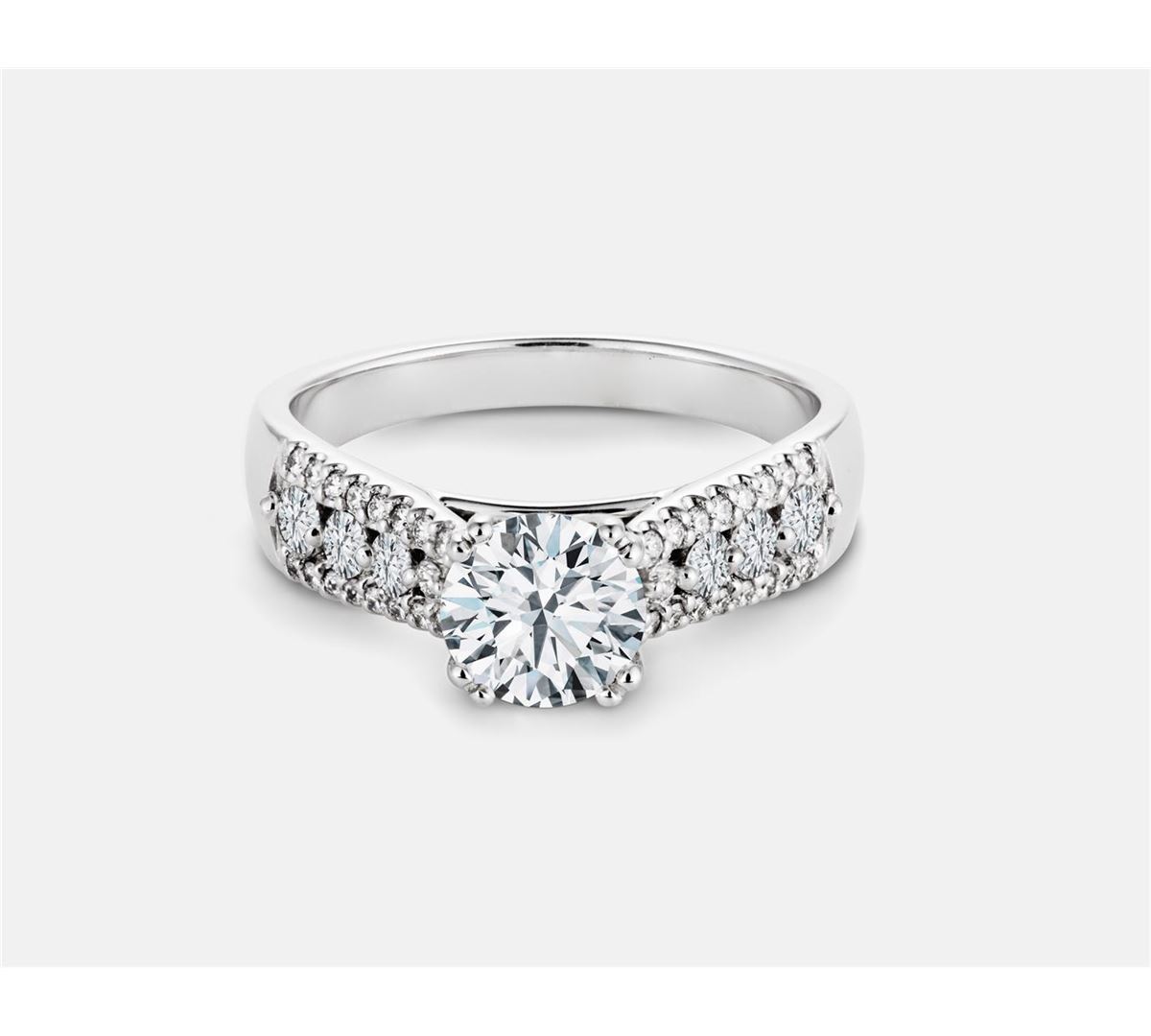 18K WG diamond in the shank Engagement setting set w/ 40-0.39 Cts G-H SI2 side stones w/ a 6.5 mm CZ Center.