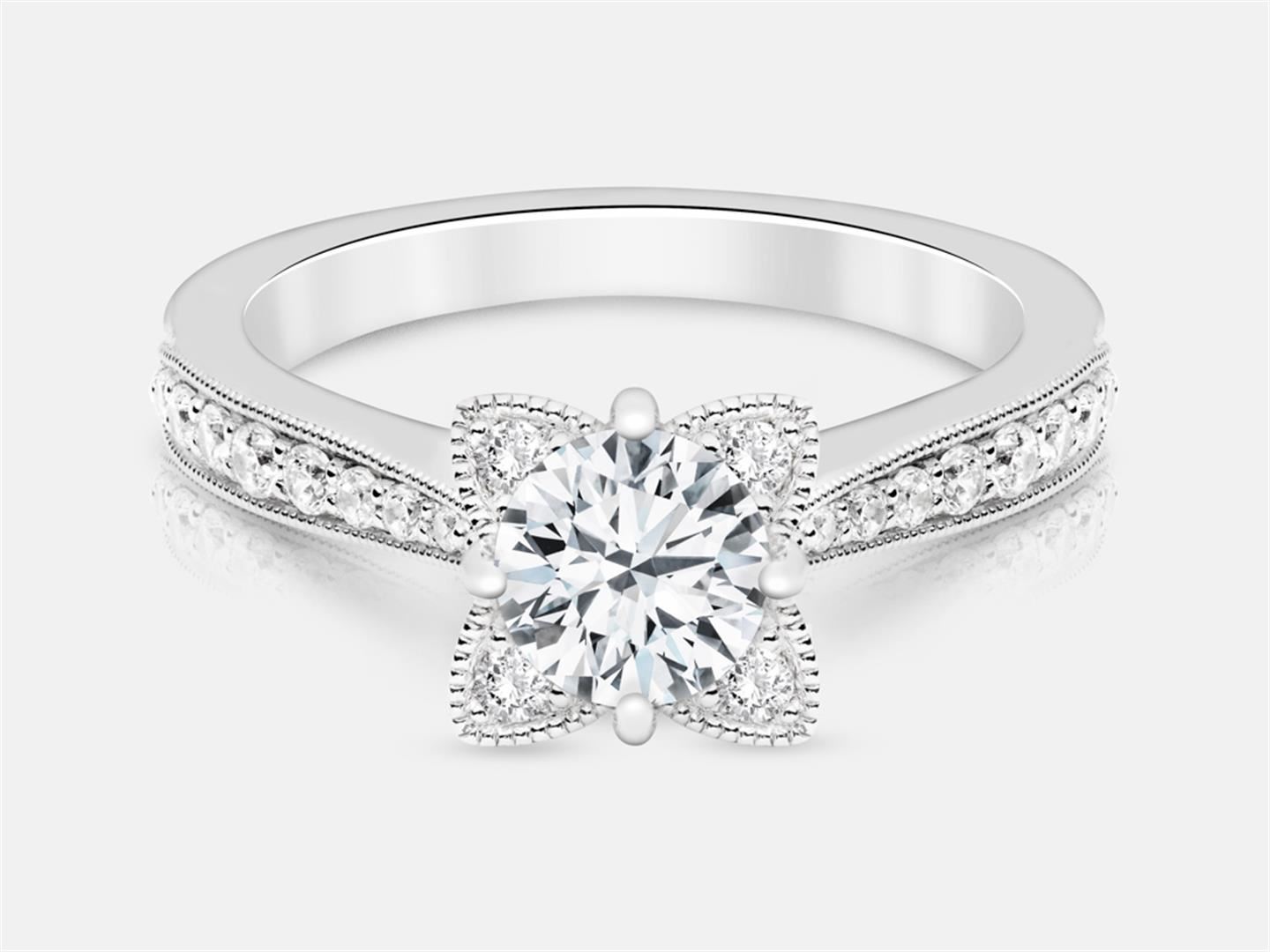 18K WG Double Halo style engagement setting set w/ 32-0.25 Cts G-H SI2 side stones w/ a 5.2 mm CZ Center.