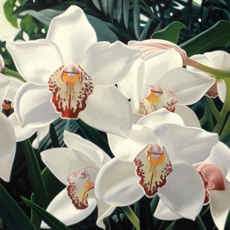"Cymbidiums In Love" is a limited edition giclee on deckle-edge paper by Brian Davis, numbered and hand signed by the artist. Includes Certificate of Authenticity! Measures approx. 43" x 21.5" (image).