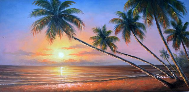 DANIEL ** BEAUTIFUL SUNSET ** SIGNED ORIGINAL . Artist: Daniel - Title: Beautiful Sunset - Medium: Original Oil on Canvas - Signature: This one-of-a-kind work is hand-signed by the artist at the bottom of the image - Image Size: Approximately 25.75 inches x 48 inches - Framed: Unframed on Unstretched Canvas - Warranty: Item GUARANTEED to be as described -