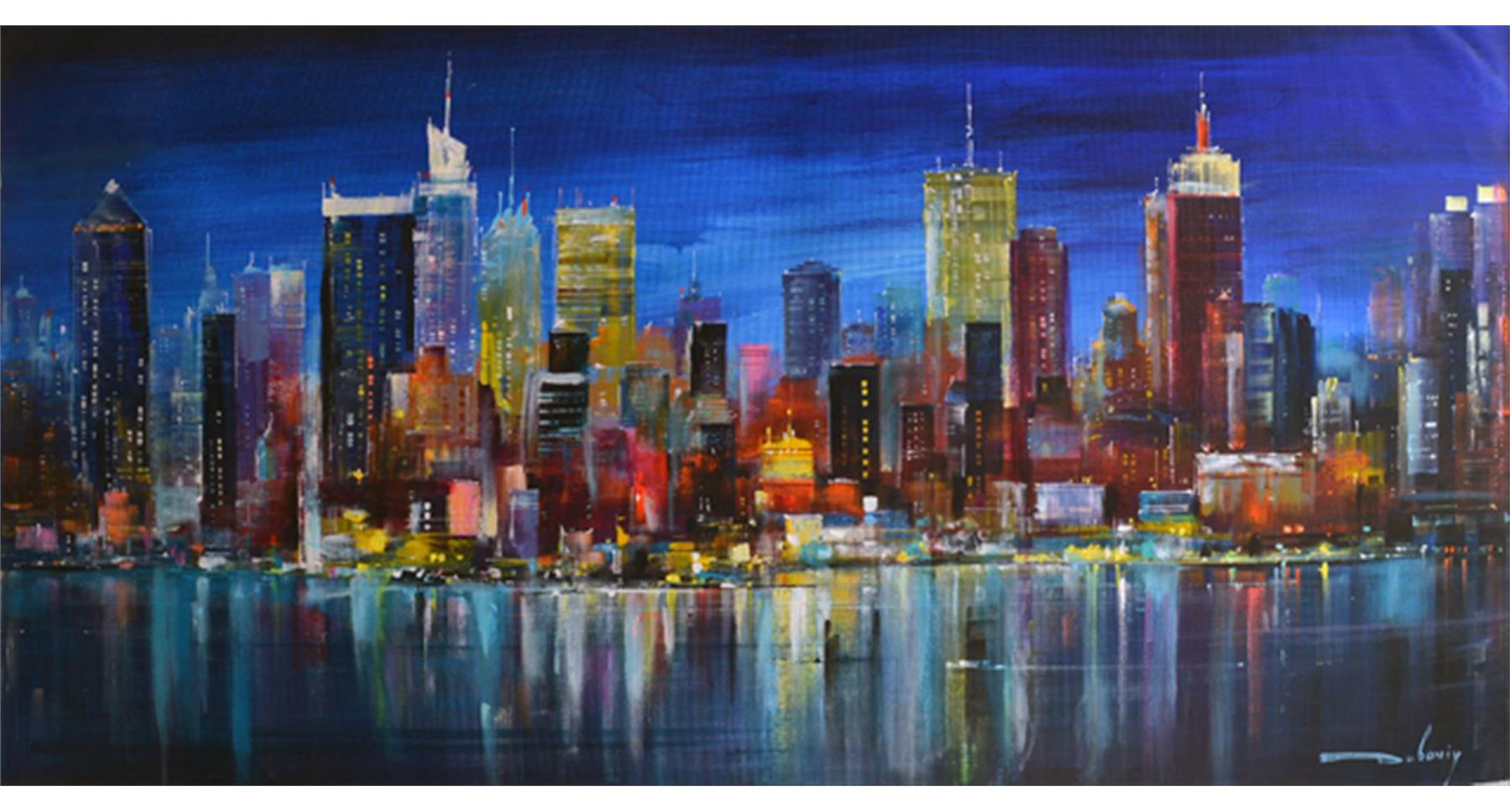 DUBOVIY **NIGHT LIGHTS** ORIGINAL . Artist: Nikolay Duboviy - Title: Night Lights - Medium: Original Acrylic on Canvas - Signature: This one-of-a-kind work is hand-signed by the artist at the bottom of the image - Image Size: Approximately 23 ¾ inches x 47 inches - Framed: Unframed on Unstretched Canvas - Details: This work comes with a Certificate of Authenticity - Biography: Nikolay Duboviy was born in Vinnitsa in Ukraine in 1964. In 1973 his family moved to live in Harkov. In 1977, Nikolay Duboviy started studying art, and in 1994 he joined the national artist union. Nikolay Duboviy concentrates on still life and landscape, which he paints dramatically with thick expressive brushwork and brilliant colors, using a special technique which he has developed by himself. - Warranty: Item GUARANTEED to be as described