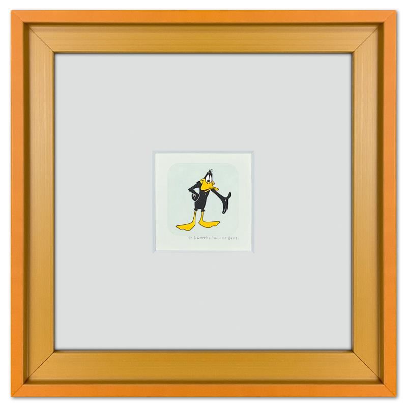 "Daffy Duck" is a limited edition etching on paper with hand tinted coloring from Warner Bros., numbered and dated 1999. This piece comes framed. Measures approx. 9" x 9" (frame), 1.5" x 2" (image).