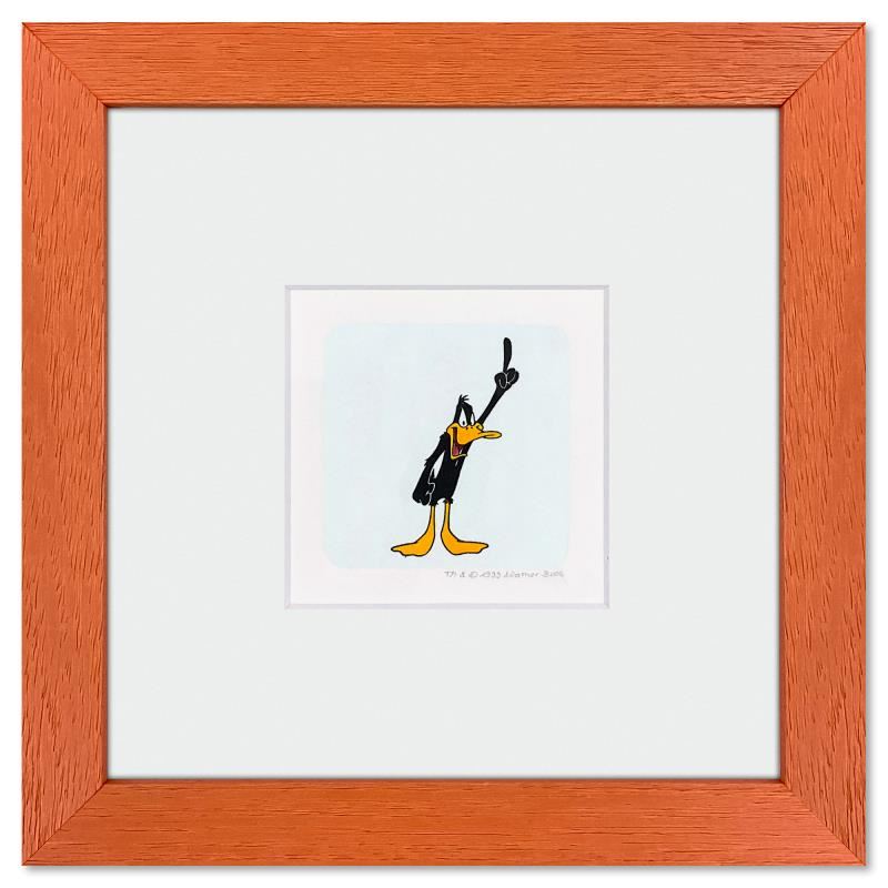"Daffy Duck" is a limited edition etching on paper with hand tinted coloring from Warner Bros., numbered and dated 1999. This piece comes framed. Measures approx. 9" x 9" (frame), 2.5" x 1.5" (image).
