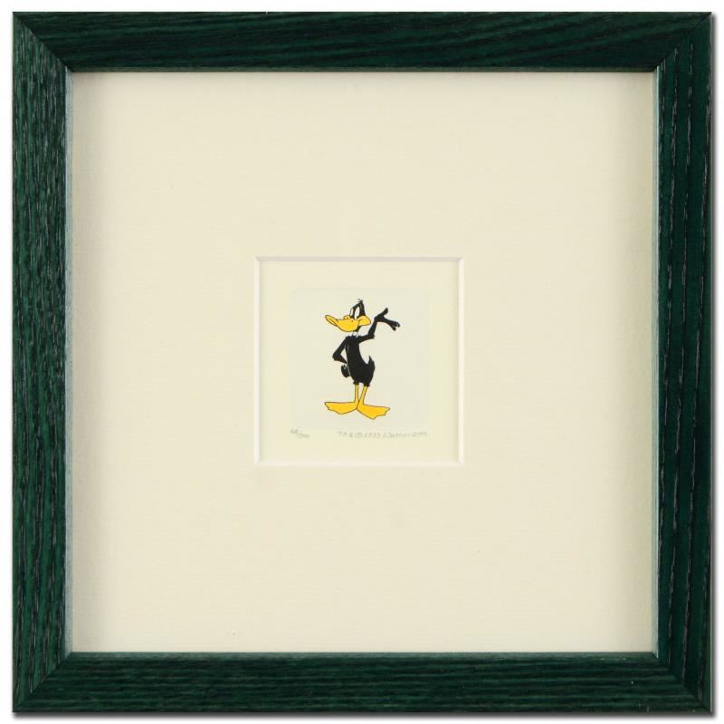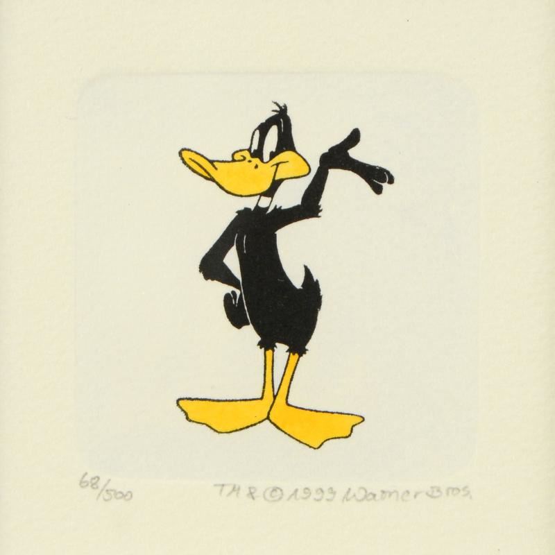 "Daffy Duck" is a limited edition etching on paper with hand-tinted coloring from Warner Bros. (dated 1999) and numbered! This piece is framed. Measures approx. 8.5" x 8.5" (with frame), 1" x 2" (each image).
