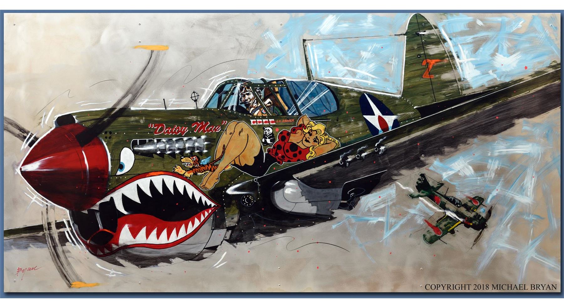 Daisy Mae joins this brave WWII fighter pilot on his way to battle in Michael Bryan's 20x40" hand-worked giclee on canvas, numbered 1/1 Unique.