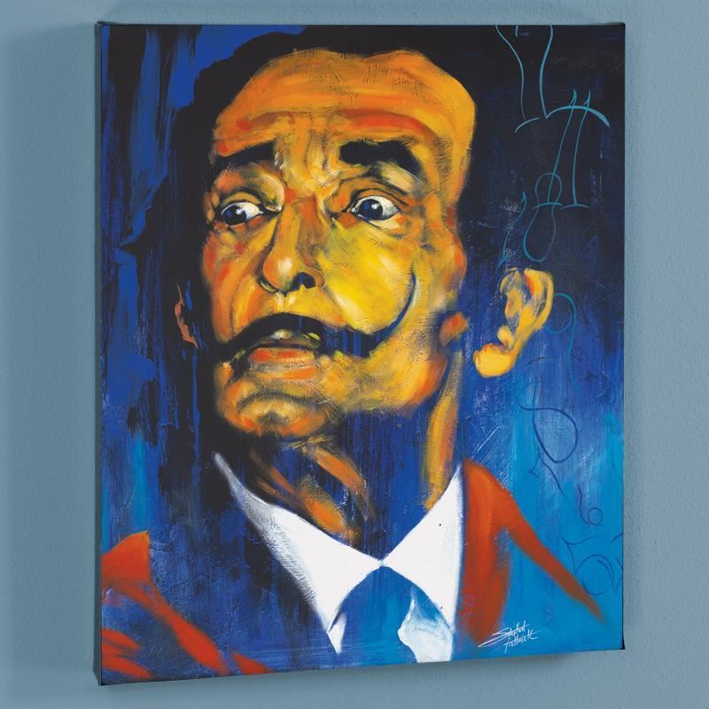 With bright colors and expressive lines, Stephen Fishwick puts a unique spin on pop culture portraits. "Dali" is a limited edition giclee on stretched canvas, numbered and bears the artist's authorized signature. This piece comes gallery wrapped! Includes Letter of Authenticity. Measures approx. 16" x 20" (image). This item requires special handling and may have a longer than usual turnaround.