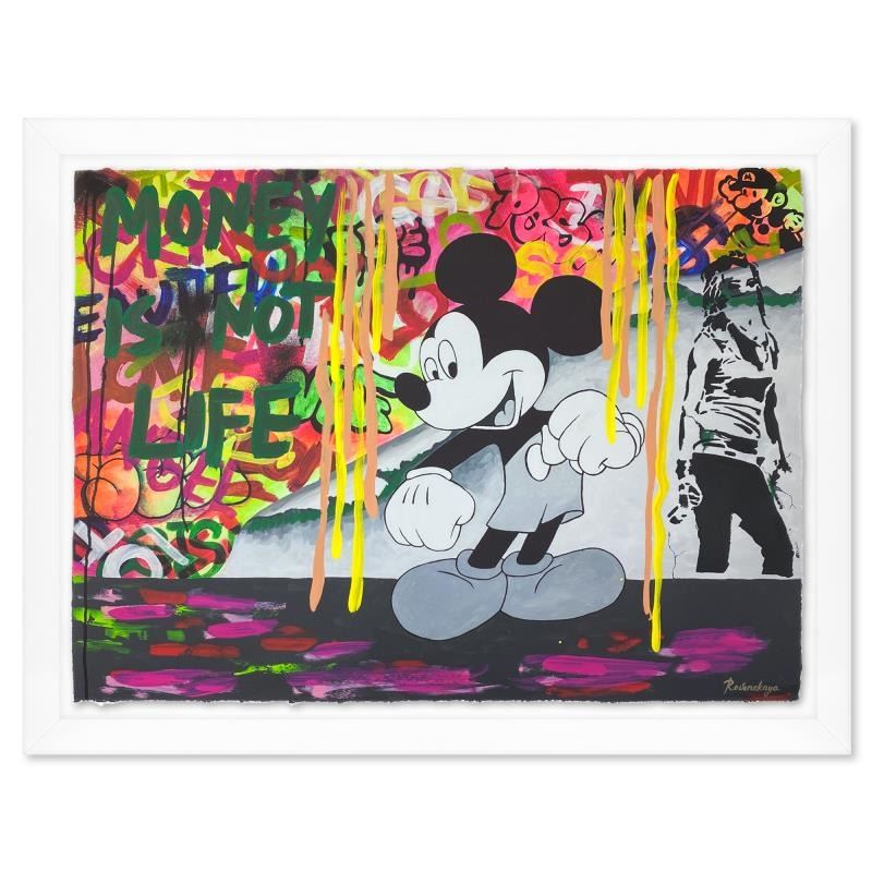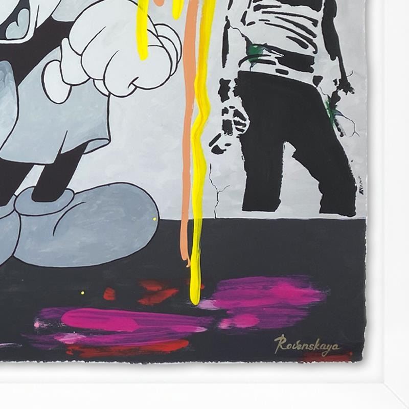 "Dancing in the City" is a one-of-a-kind mixed media on deckle edge paper by Nastya Rovenskaya, Hand signed by the artist. This piece comes floating in a custom frame. Includes Letter of Authenticity. Measures approximately 27" x 34" (framed), 23" x 30" (image).