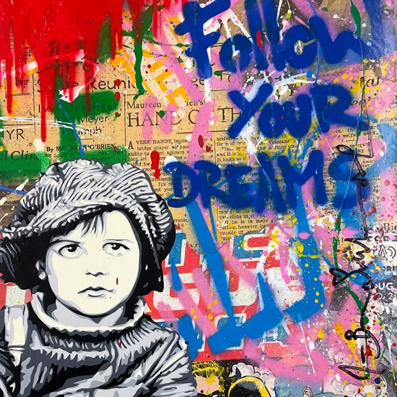 "Day Dreaming" is a mixed media original on deckle edge paper by Mr. Brainwash, hand signed and bearing the thumbprint of the artist inverso. This piece comes custom framed. Includes Certificate of Authenticity. Measures approx. 26" x 34" (frame), 22" x 30" (image).