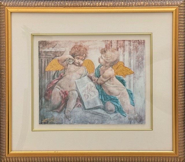 The giclee of Richard Franklin's famous cupids. Signed, numbered and gold embellished On deckled paper, 19.75"x17" framed, 11.25"x 8.75" unframed.