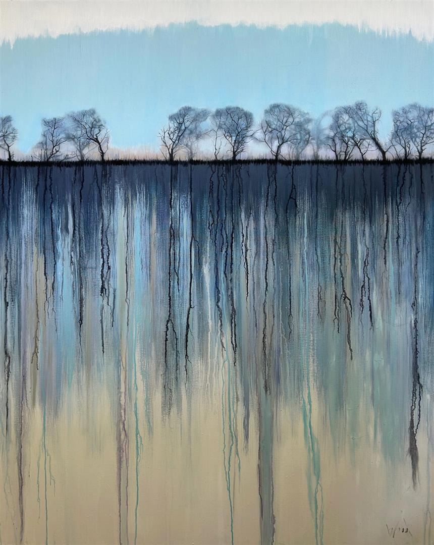 Abstract landscape with tree line. 60x48" Original acrylic on stretched canvas by Marion Wood . COA.