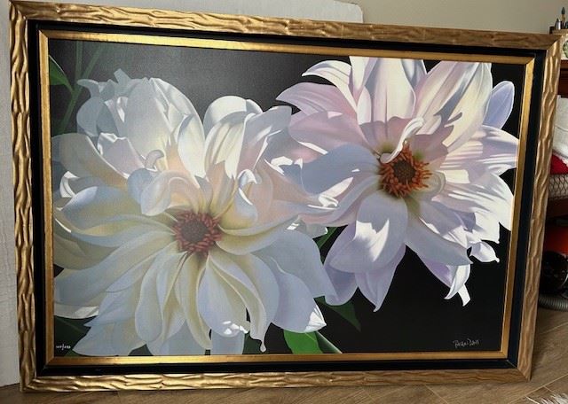 Museum collected artist Brian Davis, famous for his portraits of flowers created this 26x40" signed & numbered giclee on canvas in 2003. it is framed in gold with black sides. This is from an edition of 295, w/COA.