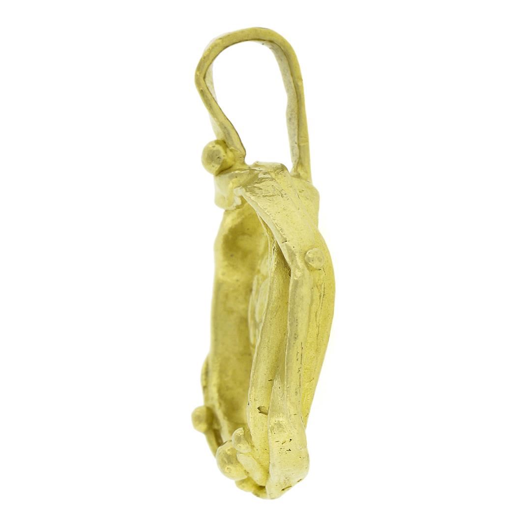 A solid 22k yellow gold coing pendant by Denise Roberge. The pendant weighs a total of 28.93 grams, measures 40x29.6mm including the bail, and the inside of the bail measures 9.7x6.2mm.