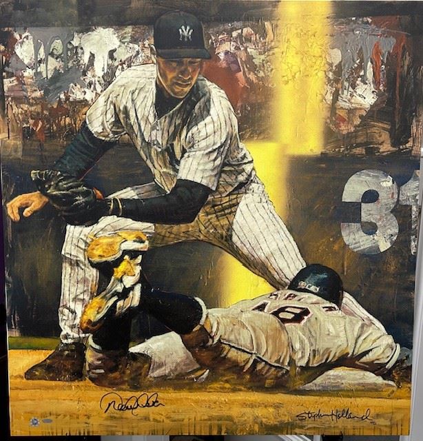 Stephen Holland's Derrick Jeter "Making the Tag", signed by Jeter & artist 36" x 34" Giclee, AP 11/22, on stretched, certificate