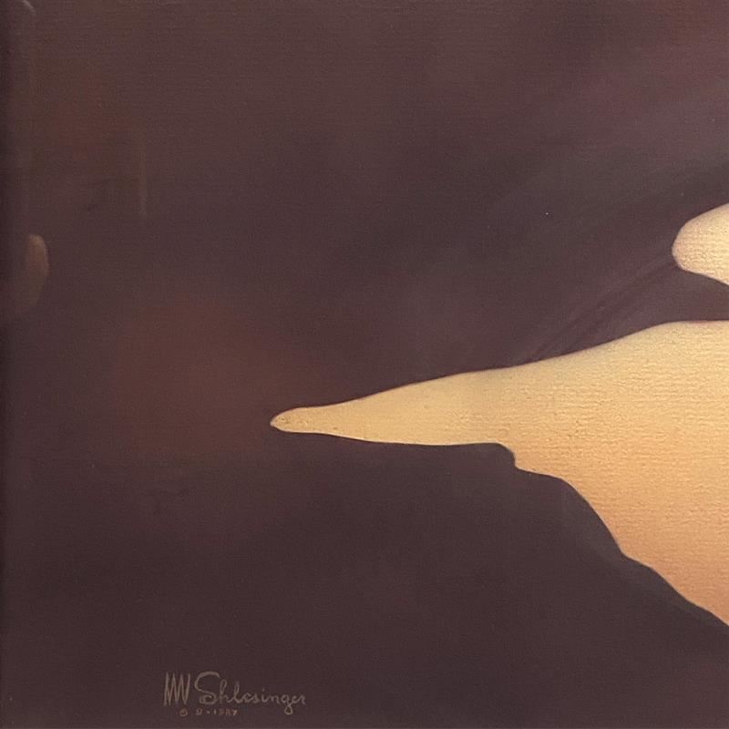 "Desert Series #7" is an original mixed media airbrush painting on paper by William Schlesinger (1915-2011), dated 1987 and hand signed by the artist. This piece comes framed. Includes Letter of Authenticity. Measures approx. 26" x 32" (frame), 17.5" x 23.5" (image). There is minor wear on the frame.