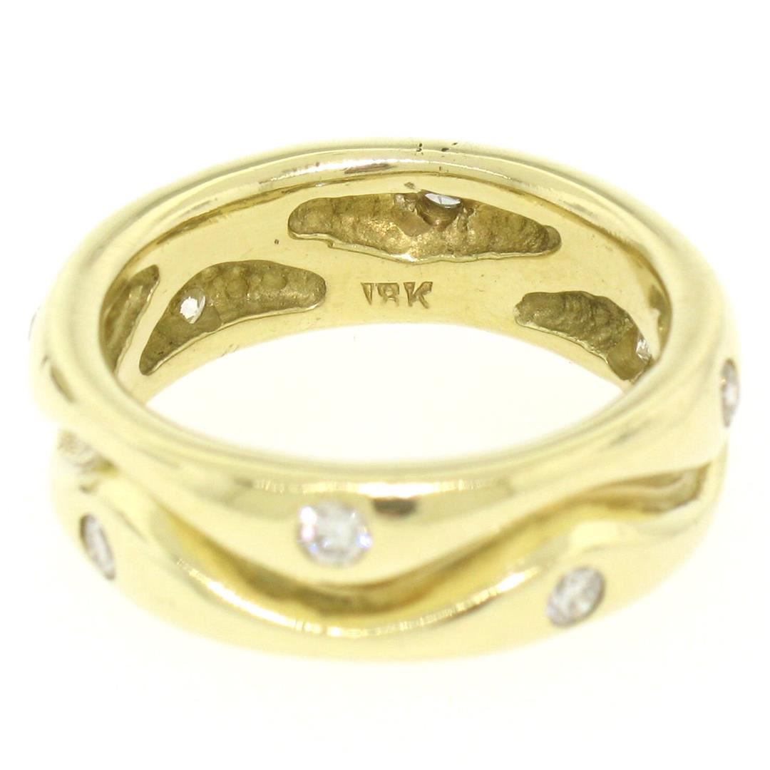 An estate solid 18k yellow gold wavy eternity band ring by Sam Lehr, featuring 8 round brilliant cut natural diamonds (G/H- VS1/VS2; 0.33ctw). The ring is size 6.0, weighs a total of 8.48 grams, and measures 6.62mm wide.