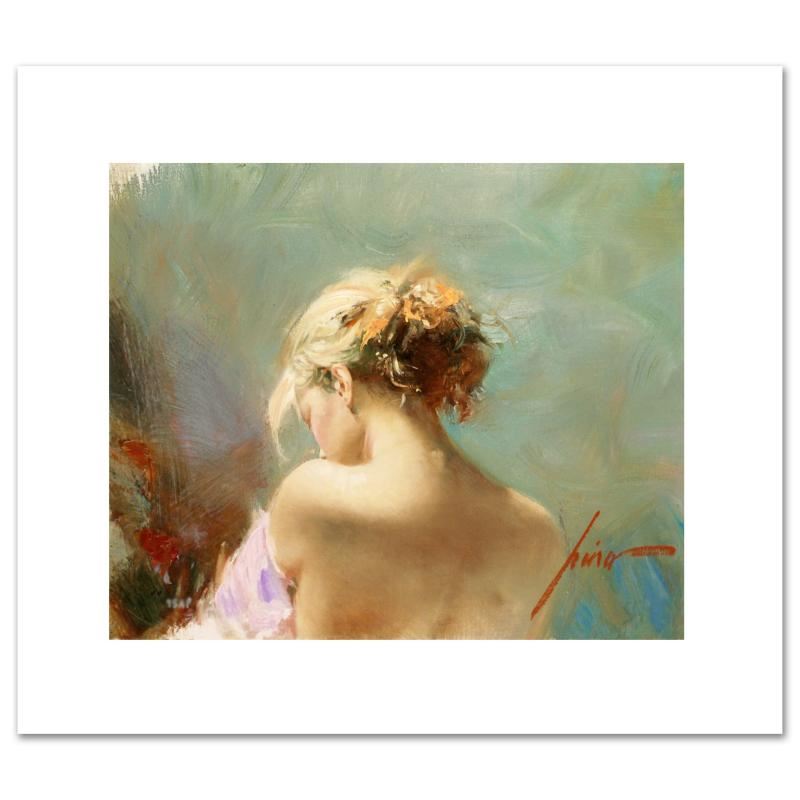 Pino's portraits allow glimpses into intensely personal, intimate spaces, conveying emotion through rich, warm color and sensual brushwork. "Desire" is a limited edition giclee on canvas that has been hand-embellished by Pino himself, AP numbered and hand signed by Pino (1939-2010). Includes Certificate of Authenticity! Measures approx. 12" x 10" (image).