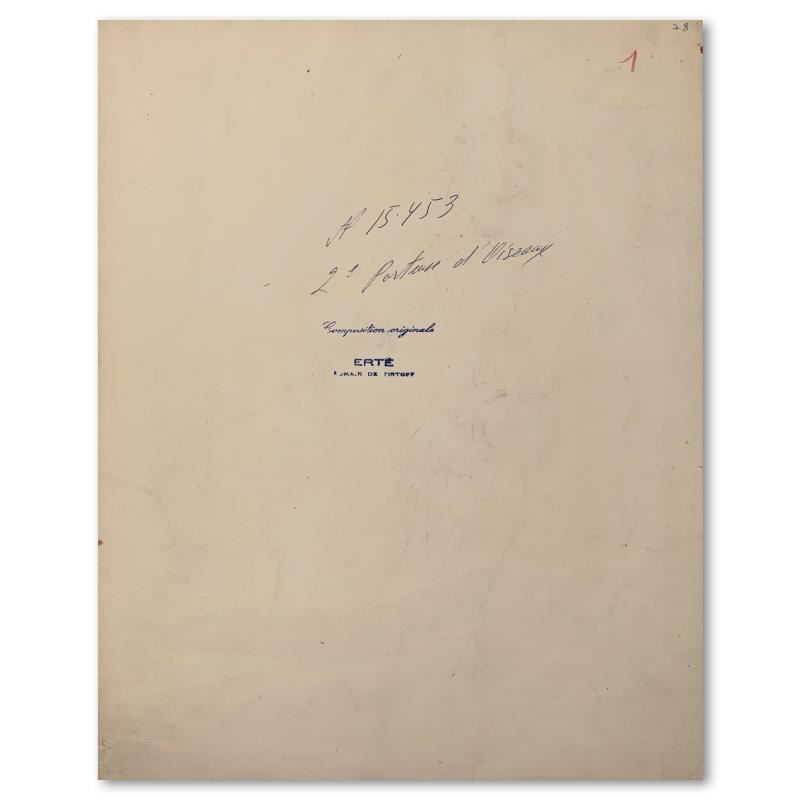 "Deuxieme porteuse d'oiseaux" is an original gauche painting on paper by Erte (1892-1990), hand signed by the artist. This piece bears the stamp, title and registration number 15.453 inverso. Includes Letter of Authenticity. Measures approx. 10.5" x 14.5".
