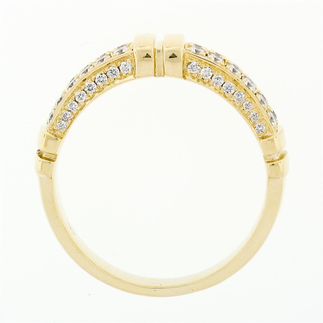 An authentic Di Modolo "Quadria" solid 18k yellow gold dual row band ring with 56 round brilliant cut natural diamionds (F/G - VS1/VS2; 0.88ctw). The ring is size 9.0, weighs a total of 7.11 grams, and measures 5.9mm wide.
