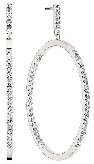 18K Large hoop earrings: set w/90 F-G color; SI1-2 clarity diamonds totaling 0.99 cttw.