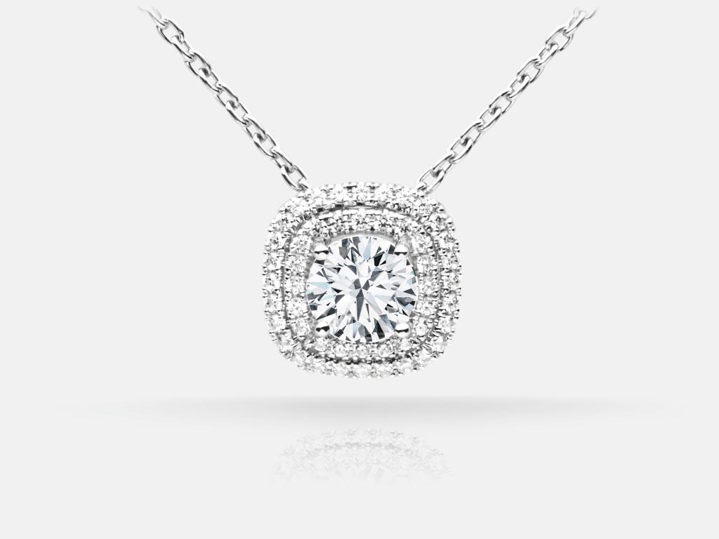 14K WG Halo style pendant set w/ 45 x G-H color SI2 clarity diamonds, featuring a 0.51 RB H-SI2 quality RB diamond.