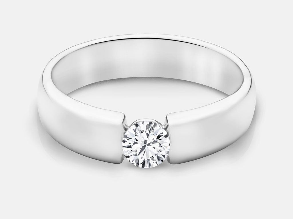 14K white gold solitaire engagement ring set with a .52 G VS2 GIA RB.