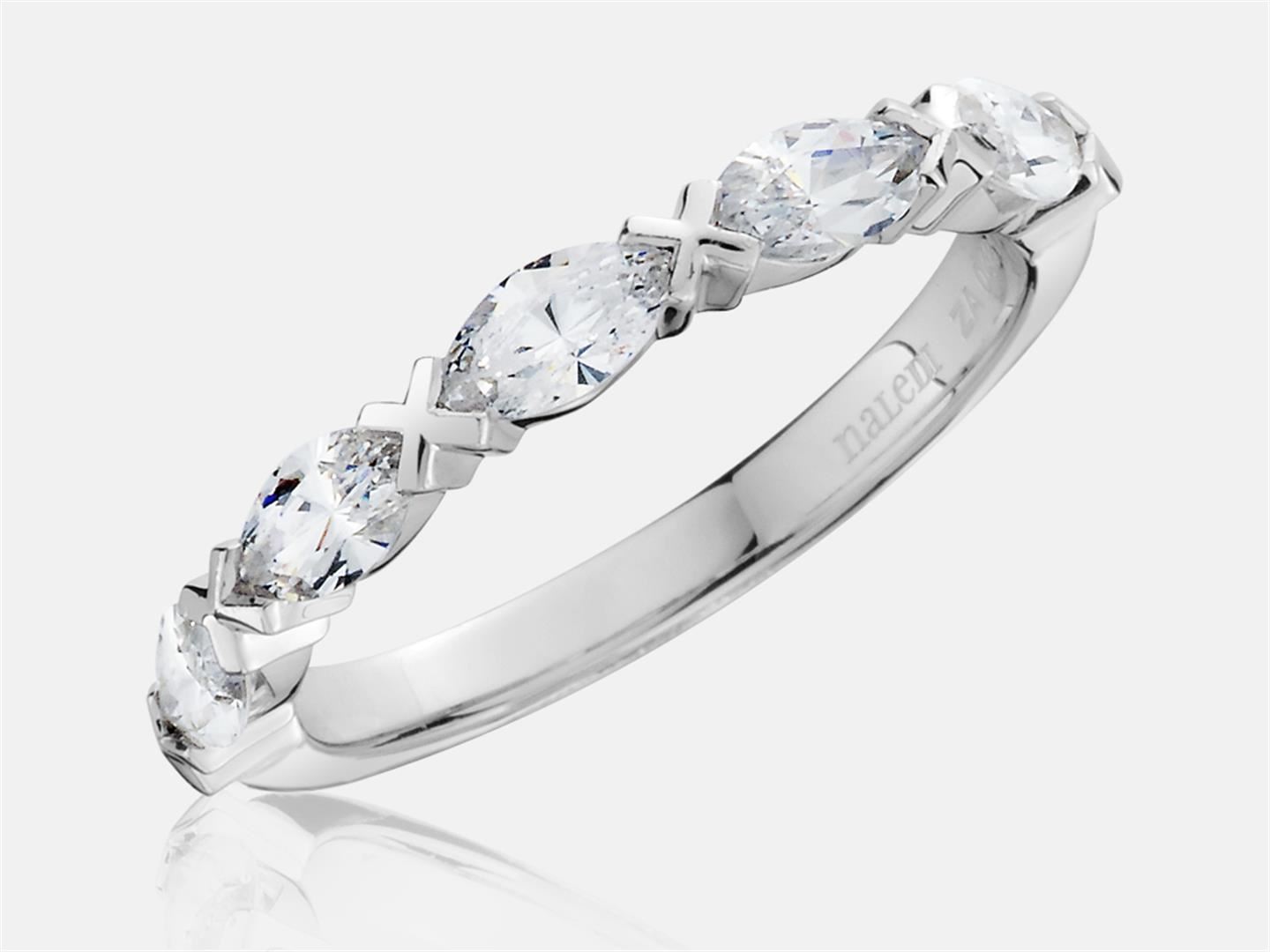 14K White gold wedding band. Featuring 7- 0.187 cts F/G SI1/2 marquise.