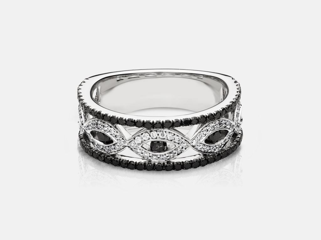 14K WG 2/3 diamond eternity band set with 75 -0.48 cts of black & 70-0.35 carats of G-H color, SI2 clarity round brilliant diamonds. Diamond content 145-0.83 cttw.