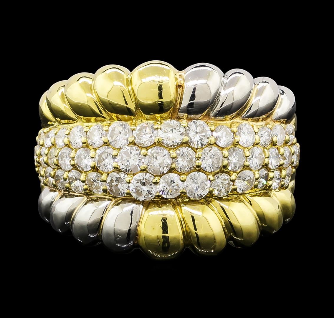 One ring featuring: 18KT Yellow Gold containing Diamonds. Total Weight of Ring: 12.8 grams.
