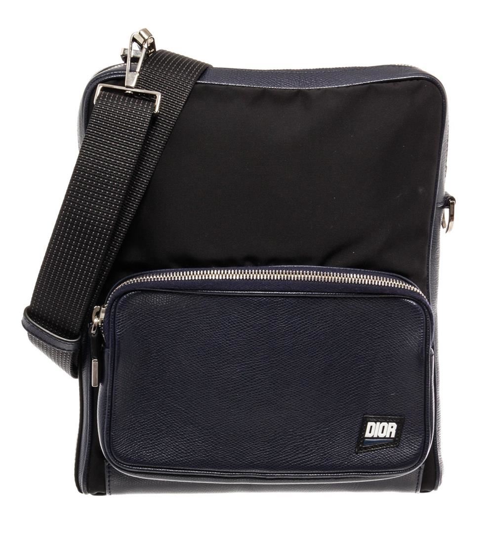 One Dior Homme Black Blue Zipper Logo Messengers Crossbody Bag. Item is sold AS-IS. All available information is listed in the description and shown in the photo. Black and blue leather Dior Homme messengers crossbody bag with silver-tone hardware, one zipper pocket at front, black adjustable straps, and black suede interior lining. 13.5? x 5? x 12? Strap Drop:60" / 34.3cm x 12.7cm x 30.48cm Strap Drop:152cm