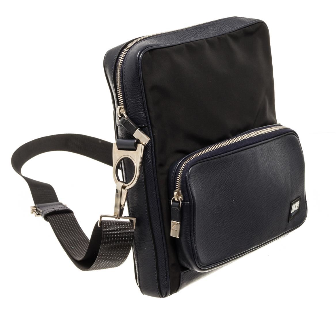 One Dior Homme Black Blue Zipper Logo Messengers Crossbody Bag. Item is sold AS-IS. All available information is listed in the description and shown in the photo. Black and blue leather Dior Homme messengers crossbody bag with silver-tone hardware, one zipper pocket at front, black adjustable straps, and black suede interior lining. 13.5? x 5? x 12? Strap Drop:60" / 34.3cm x 12.7cm x 30.48cm Strap Drop:152cm