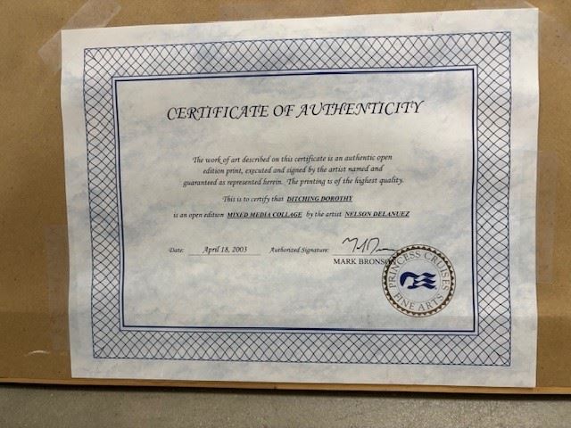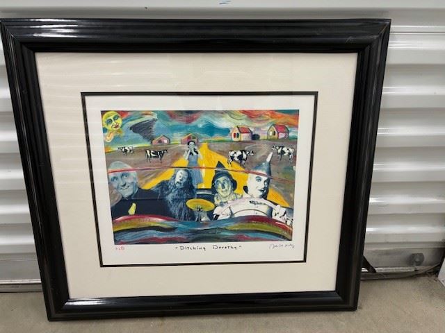 This is a mixed-media collage of licensed characters from the Wizard of Oz. 24x26.75 framed.