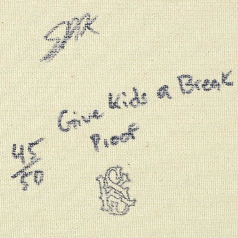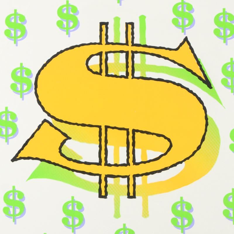 "Dollar Sign" is a limited edition hand pulled silkscreen on canvas by Andy Warhol protege Steve Kaufman (1960-2010). This piece is numbered 45/50 and hand signed inverso. Includes Certificate of authenticity. As is common with Kaufman's works, this piece may have perceived minor flaws, but is in overall good condition. Measures approx. 24" x 24" (image). Please note: there is minor smudging on the bottom right corner that may be concealed when stretched and framed.