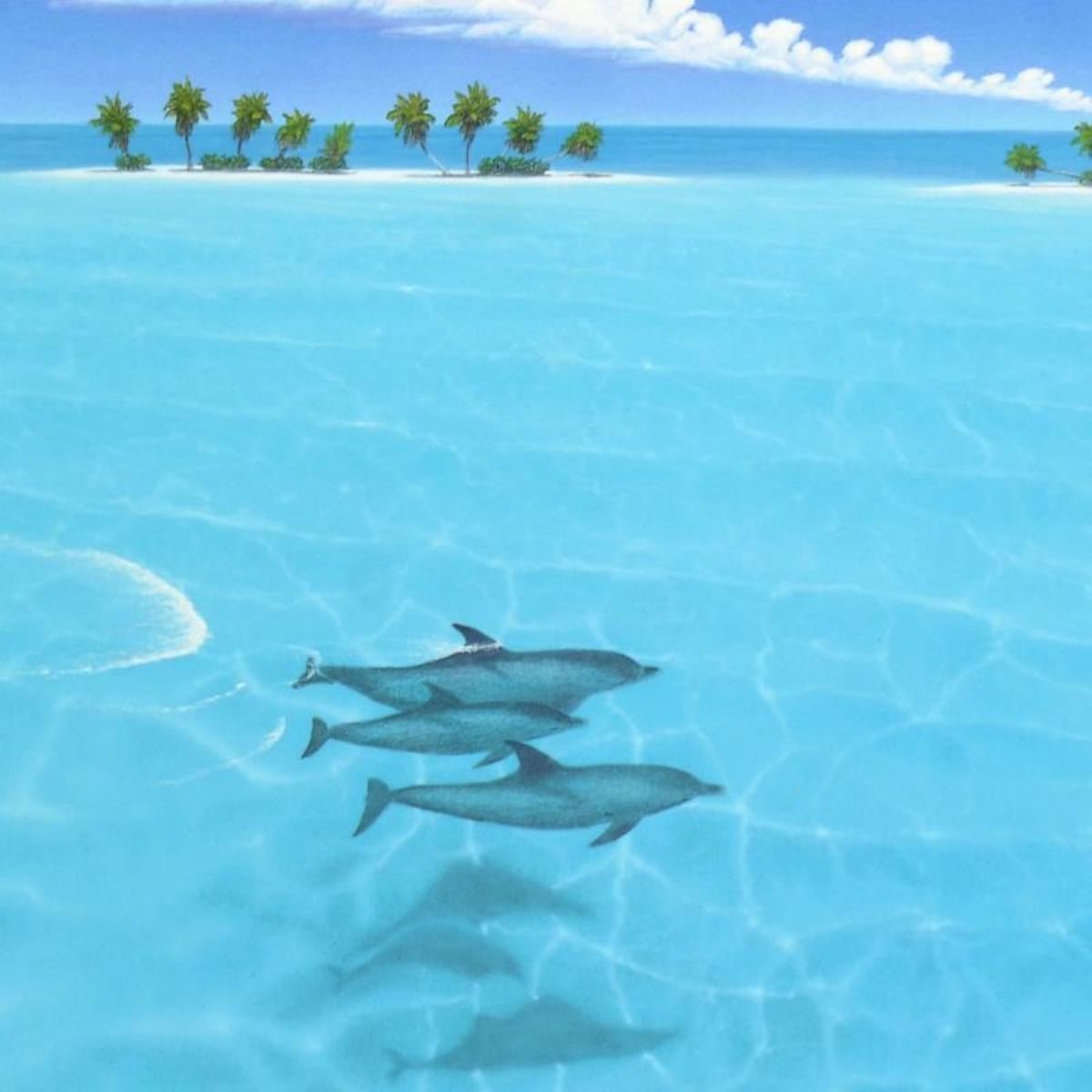 Dolphin Trio by Mackin, Dan. "Dolphin Trio" is hand signed and numbered lithograph from a sold out limited edition on paper by Dan Mackin. Includes Letter of Authenticity. Measures approx. 16" x 12" (border), 14" x 10" (image).