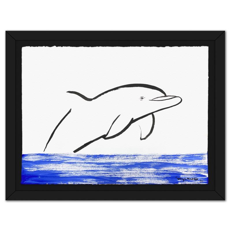 "Dolphin" is an original sumi ink painting on paper by Wyland, hand signed by the artist. This piece comes custom framed. Includes Letter of Authenticity. Measures approx. 30" x 37" (frame), 23" x 30" (image). This item requires special handling and may have a longer than usual turnaround.